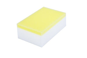 Dual sided cleaning. Eraser side for tough cleaning, sponge side for removing residue.