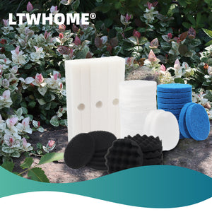 Pack include: 6 x Foam filter, 6 x Carbon filter, 12 x Fine filter, 12 x Polishing pad, 6 x Bio-foam filter.